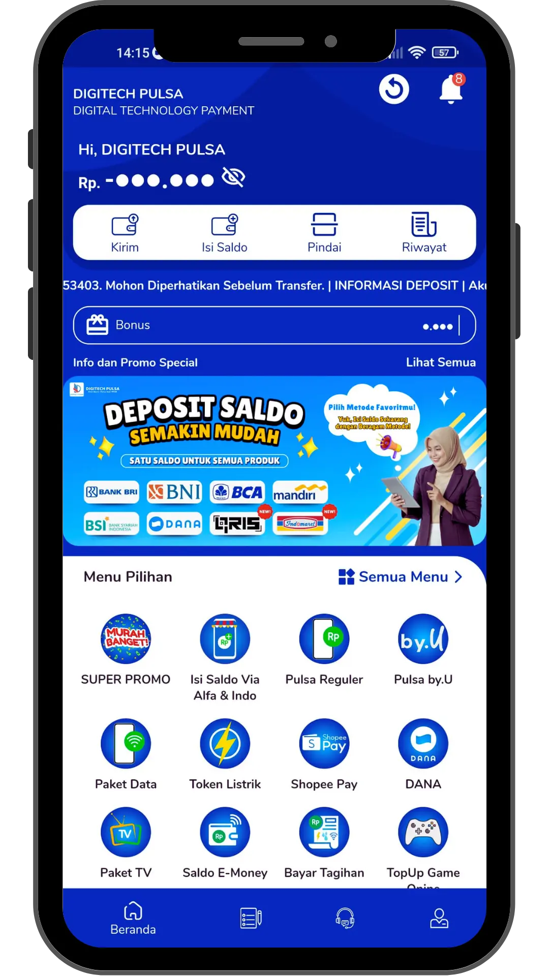 - Buka aplikasi Digitech Pulsa